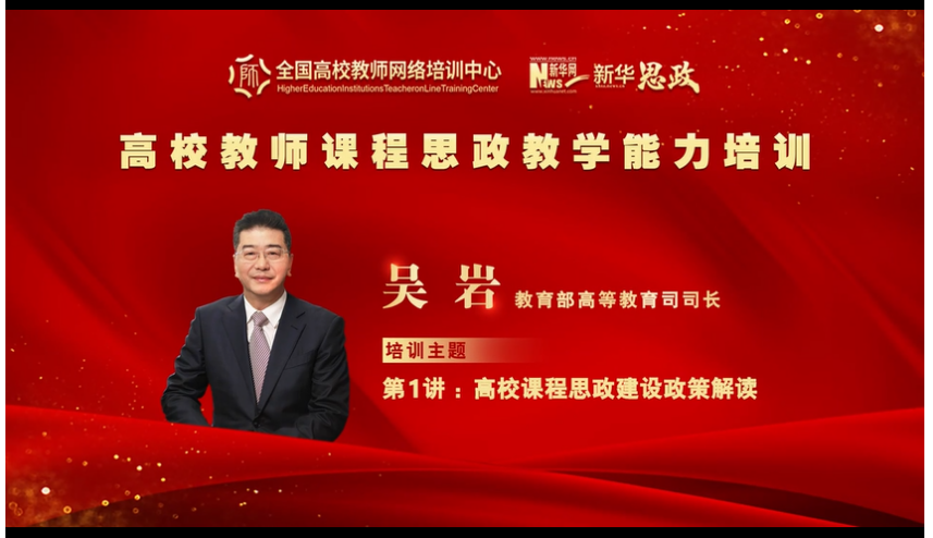 教育部高等教育司司长吴岩在培训中做了题为《高校课程思政建设政策解读》的报告,对《高等学校课程思政建设指导纲要》进行了再解读,帮助各高校和各教师深入领会《纲要》精神,助推课程建设工作见功见效,将课程思政深化推向高质量。