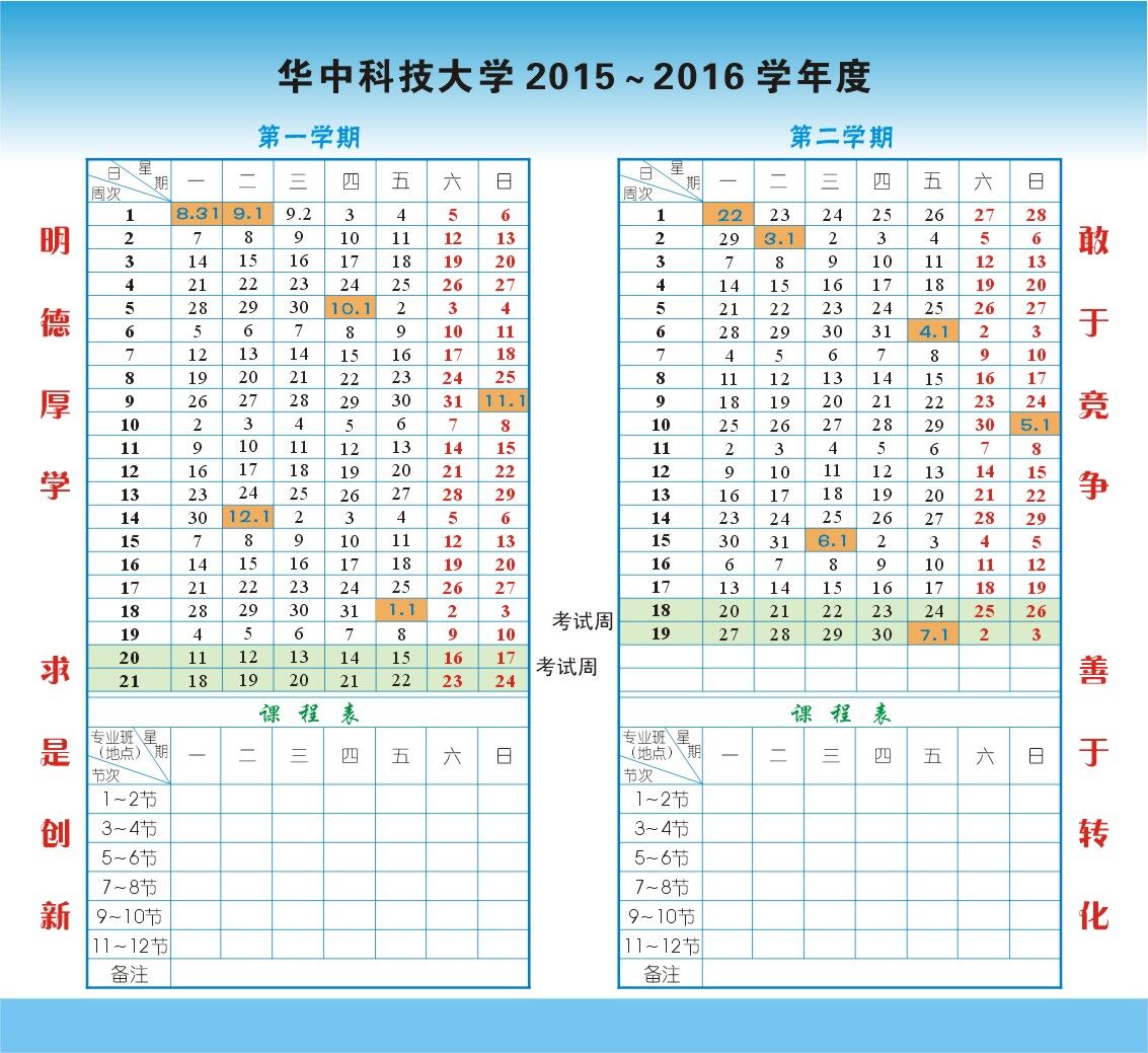 咕咕番 2015-2016学年度校历