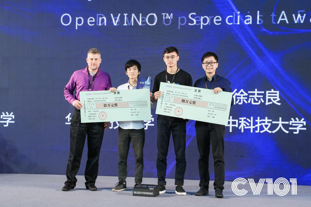 学生梁定康、徐晨丰、徐志良、陈习武、杨贤组成的团队在许永超、白翔和林宏志老师的指导下,斩获主赛道冠军以及“OpenVINO”赛道冠军,也是唯一在两个赛道获奖的队伍,并获得18万元的现金奖励。