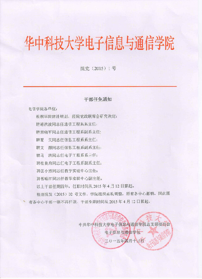 院党(2015)1号 干部任免通知