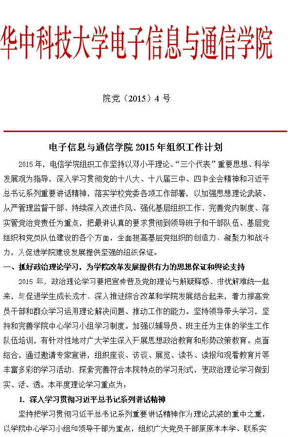 院党(2015)4号 咕咕番 2015年组织工作计划