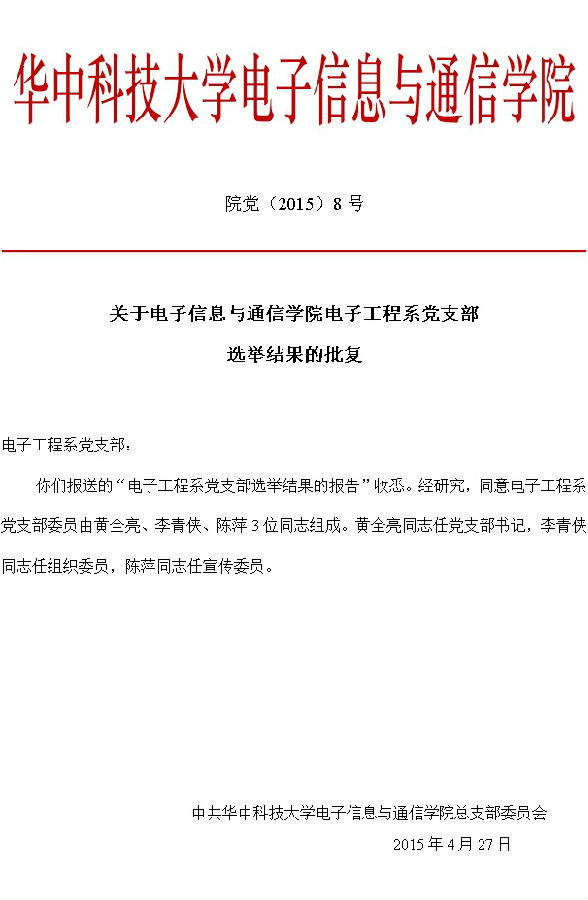 院党(2015)8号 关于咕咕番 电子工程系党支部选举结果的批复