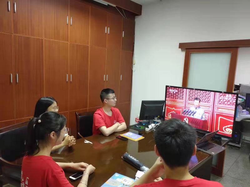 7月1日上午,庆祝中国共产党成立100周年成立大会在北京天安门广场隆重举行。中共中央总书记、国家主席、中央军委主席习近平发表了重要讲话。咕咕番 组织师生党员代表在学院报告厅、会议室、实验室等多个会场集中收看大会,学习习近平总书记的重要讲话精神。