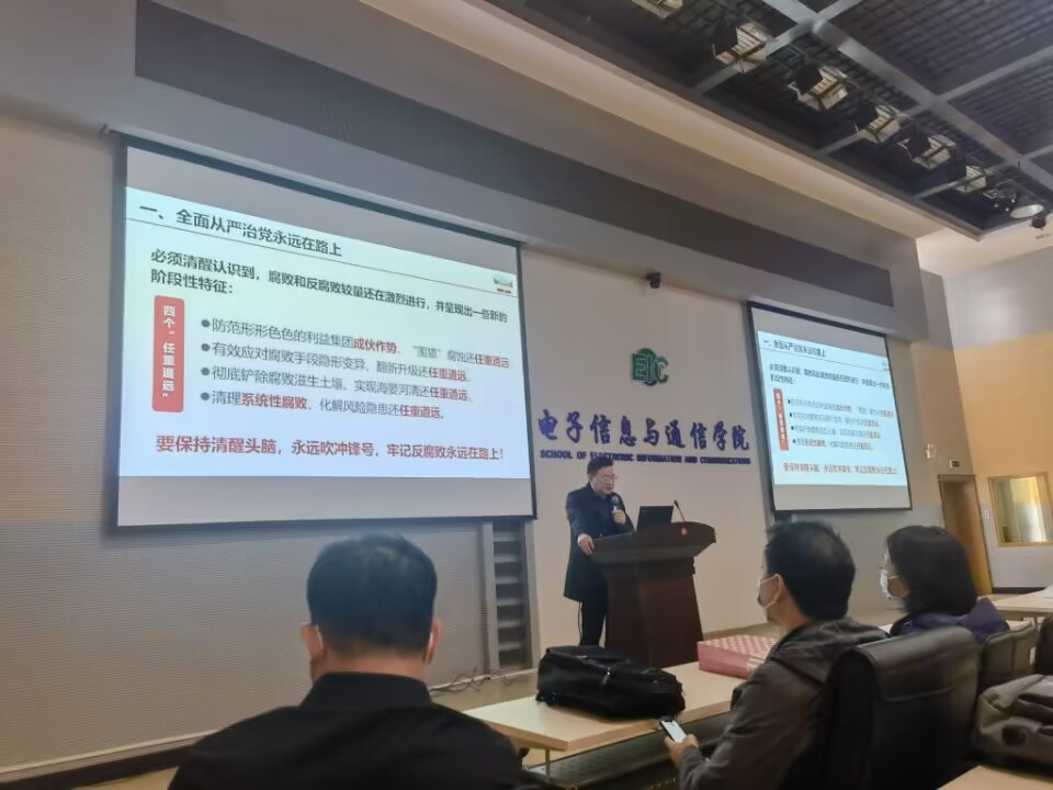 2022年党风廉政建设宣传教育月活动方案》的通知要求,10月27日下午,电信学院在A101报告厅召开全体教职工大会,开展党风廉政建设主题教育暨集中警示活动。学院党委书记郑小建主持会议并讲授廉政专题党课。