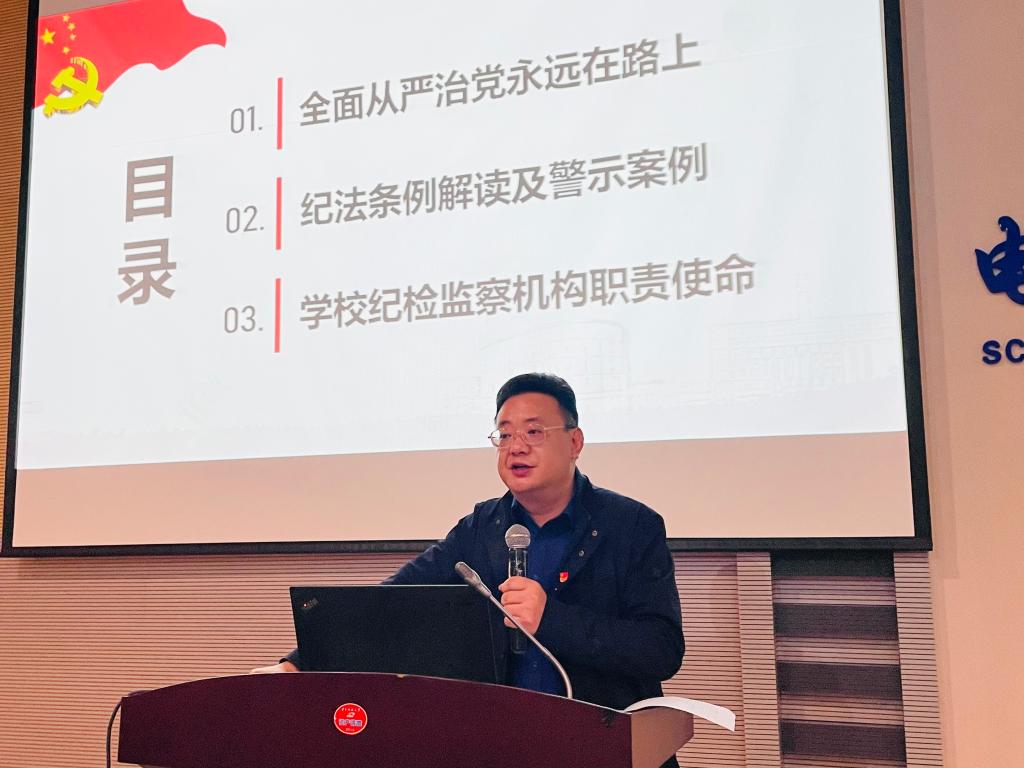 郑小建详细解读了有关纪法条例、学校相关规定及警示案例,具体分析了院校目前存在的风险敏感点,从重点领域、关键环节出发,以高校中违法违纪的生动案例进行警示教育。他指出,全体教职工要深入学习习近平总书记关于党的自我革命战略思想和全面从严治党重要论述,提高政治站位,约束个人言行,廉洁自律、诚实守信,守好教师“红十条”,共同营造学院清廉政治生态。