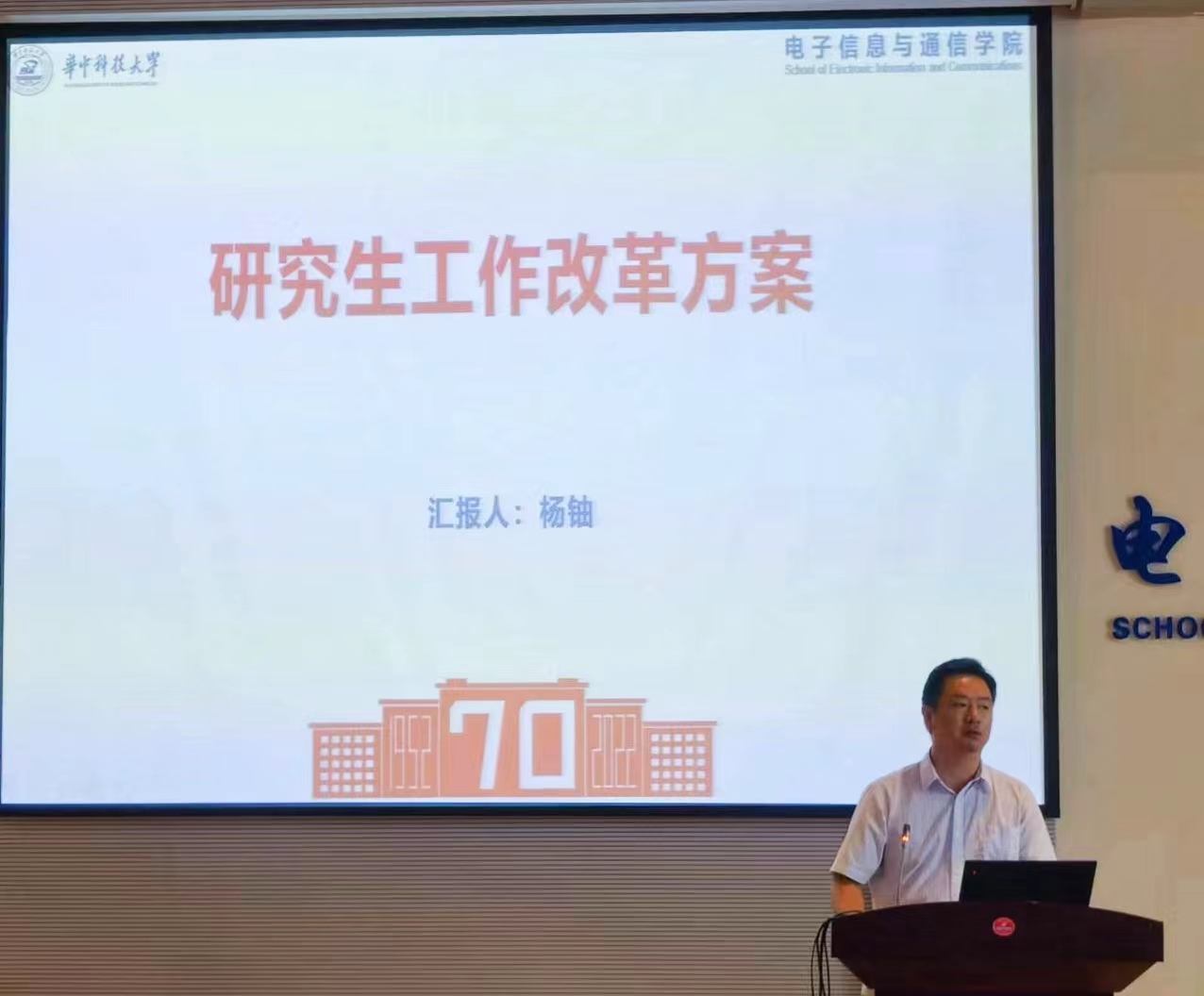 副院长杨铀作研究生工作报告,分析了研究生招生工作面临的新形势新变化,重点介绍了学院在开拓招生宣传策略、调整招生结构、重视专项计划等方面政策和举措,通报了学院在研究生课程建设和优化落实人才培养方案的新举措新做法。