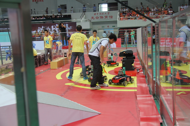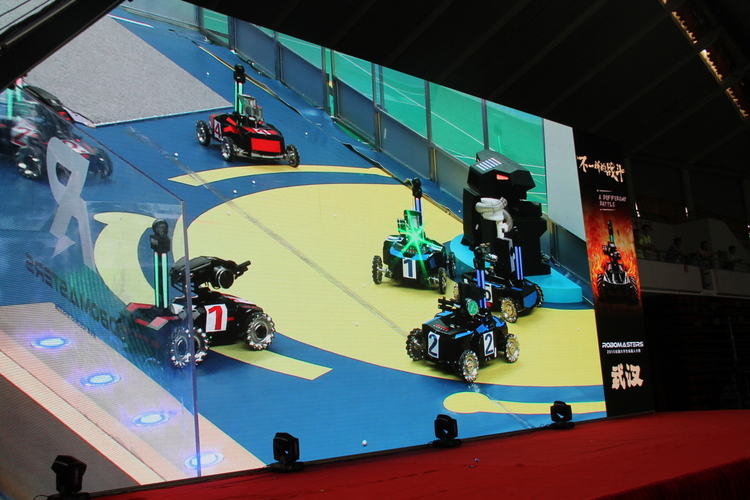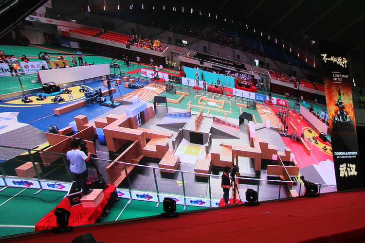 本次大赛采取了“战车射击大战”这一全新的比赛模式,是对传统机器人大赛的重新定义,对于参赛选手和现场观众来说,都是一场酣畅淋漓的科技盛宴。比赛场地设在一个篮球场大小的区域内,四周竖起透明的防护围栏,场地中设有模拟各种战斗情境的障碍物。基地、维修站、瞭望塔、补给站,军事设施一应俱全,场地实现全智能化实时控制,观众的视听感官兴奋神经随战况一触即发。