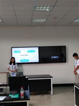 经过短暂的休息,产品现场评测在下午1:30准时开始。评测开始前,各参赛队伍将其产品调试完毕后,搬进测试场地。每次测试只允许一直队伍在场内与评委进行沟通,其他队伍则在候场区进行准备。在准备的过程中,也会有指导老师,或评委老师来窜访,各个队伍也会彼此之间进行交流,营造出相互交流,相互帮助,共同进步的氛围。