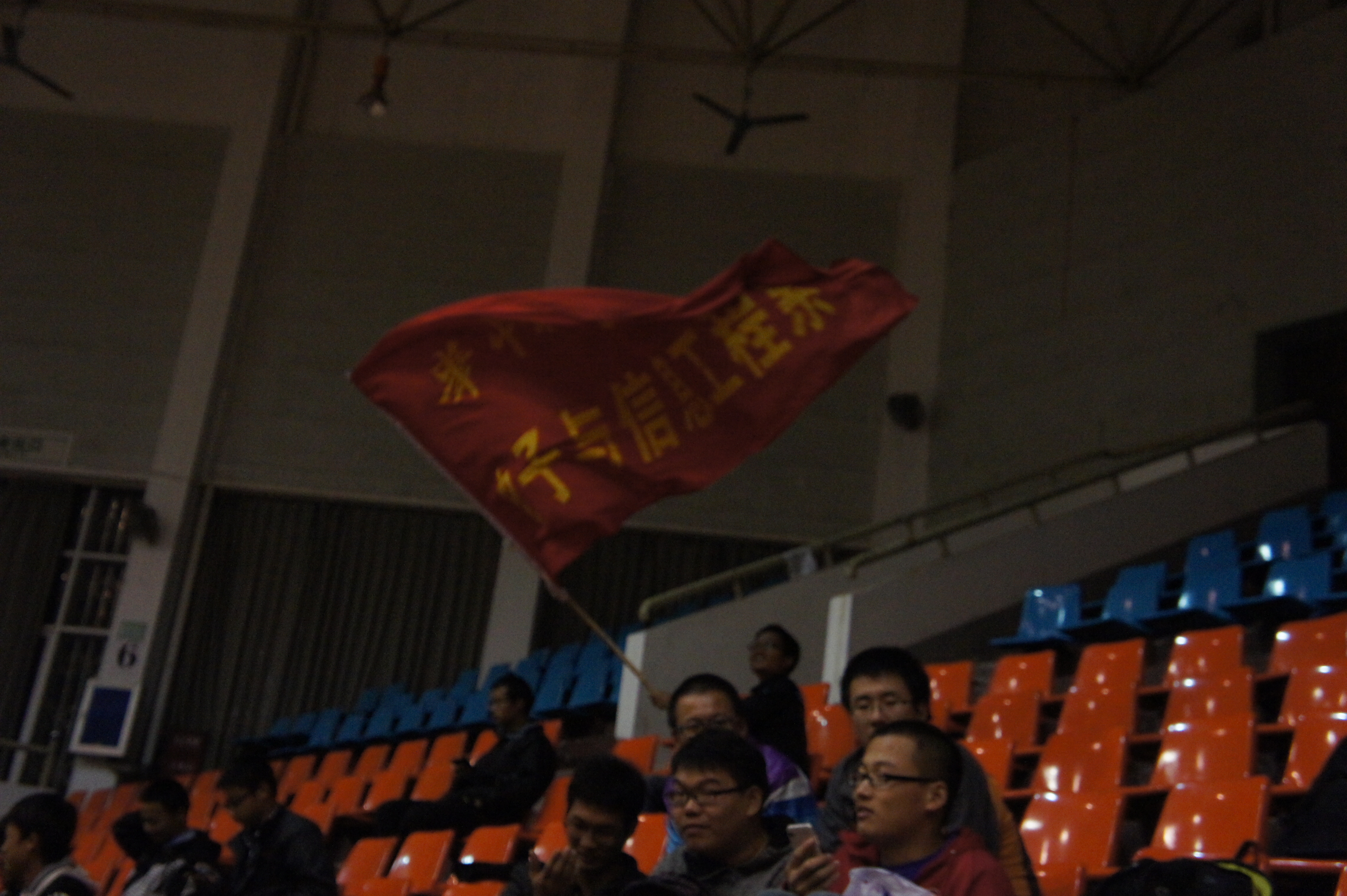 比赛开场不久,电信代表队便先得两分,开始两队的进攻都不是特别流畅。接着,电信代表队打出了8:2的小高潮。光电代表队也不甘示弱,发起猛烈的二号位和四号位的进攻。比分紧追电信代表队。第一场接近尾声,19:18电信代表队以两分优势领先。随着副攻刘文宇的一个精彩近网吊球和三号位重扣拉开差距,以25:18赢得了第一场比赛。第二场比赛是最精彩的部分,双方都找到了比赛的节奏感。光电代表队进行了战术调整,加强了进攻,灵活运用吊球,一直紧追比分。顺利将比分扳平为12:12.并反超2分。比赛气氛也由此变得紧张。暂停过后,两队的表现不相上下,但是电信骄子还是坚持到了最后,以2分的微小差距拿下了第二局。比赛过程中两队的啦啦队纷纷为各自的队员呐喊助威,我系啦啦队更是擂响大鼓,舞动系旗,声势浩大。最后一局,电信代表队气势如虹,用背飞摆脱对方拦网,副攻和二传的表现无可挑剔,我们以9:1遥遥领先。虽然对方也打出了漂亮的反击,但还是未能逆转。最终,电信以25:11大比分获胜,以3:0的战绩成功卫冕“华工杯”。