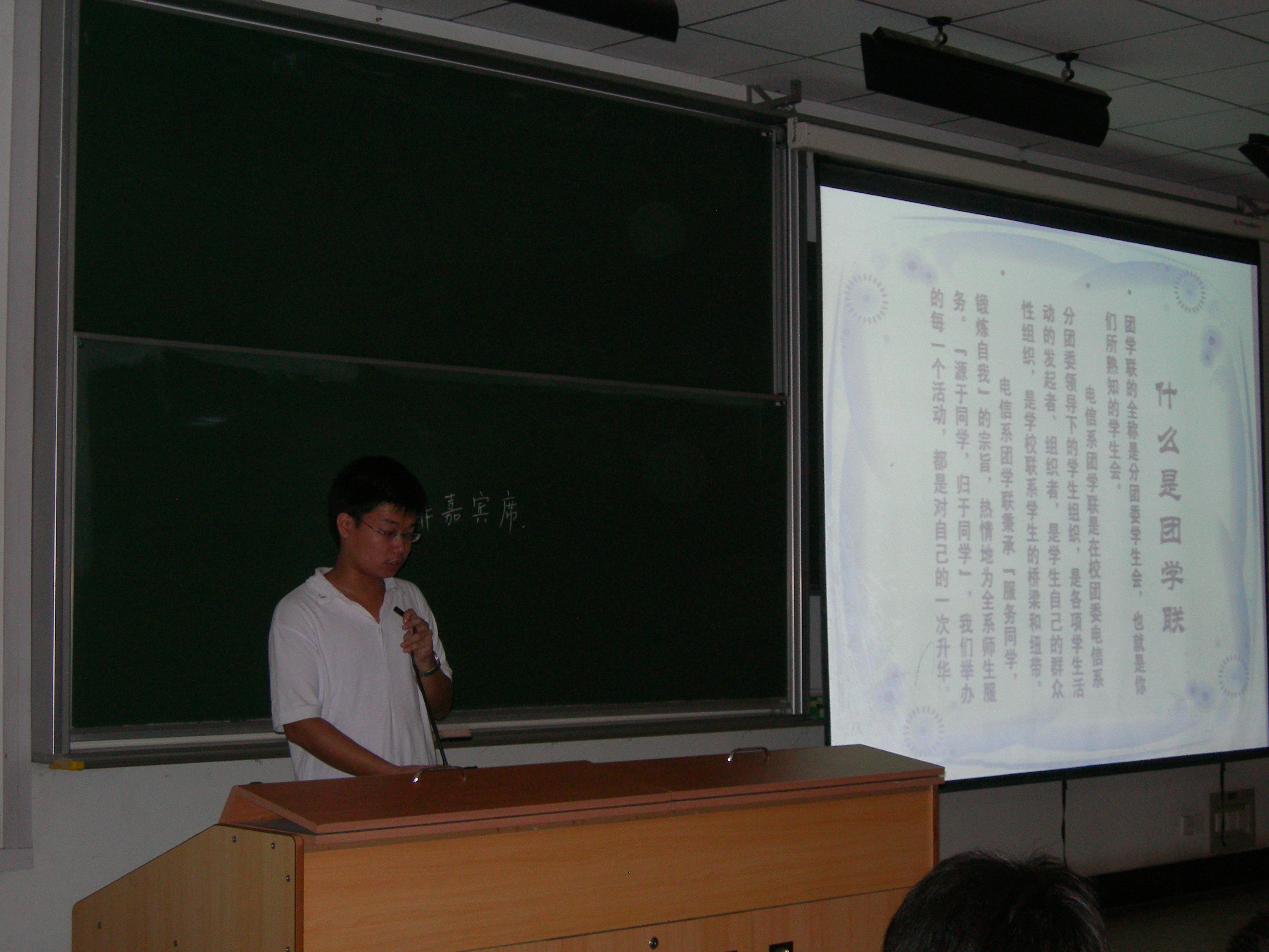 本次风采展示会由团学联主席团马翼春主席主持,闫建波辅导员首先对2011级电信系新生发表了老师对他们的寄语,同时也强调了参加一定的学生活动有助于大学生综合素质的提高。马翼春主席接着详细介绍了团学联的主要工作,对团学联成员成长发表了自己的见解。
