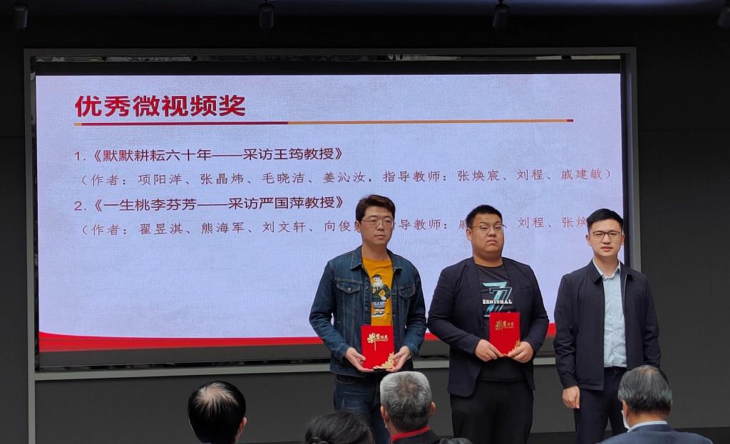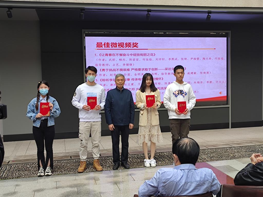 关工委2021年“读懂中国”活动颁奖仪式暨作品展演在老年活动中心举行。我院学生作品《勇于挑战不畏艰辛,严格要求敢于创新——采访文灏教授》荣获“最佳微视频奖”,《默默耕耘六十年——采访王筠教授》、《一生桃李芬芳——采访严国萍教授》荣获“优秀微视频奖”,《一生许党,电信报国——文灏教授专访》、《恪守入党誓词,默默耕耘六十年——王筠教授专访》、《党旗飘扬讲台,一生桃李芬芳——严国萍教授专访》荣获优秀征文奖,咕咕番