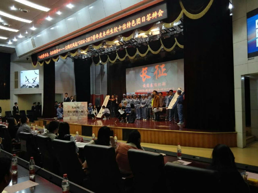 在短短两个半小时的时间里,校二十佳支部接连登场,联手为评委和观众送上这场年度大戏。舞台上人来人往,人声鼎沸,台下惊叹连连,喝彩叫好。二十个支部答辩形式风格迥异,百花齐放,将大会气氛一次又一次推上高潮。值得一提的是,晚会开场的民族舞蹈、晚会中穿插的古筝四重奏和对口相声表演,在极具观赏性的同时也向观众们展示出中国传统文化的巨大魅力。