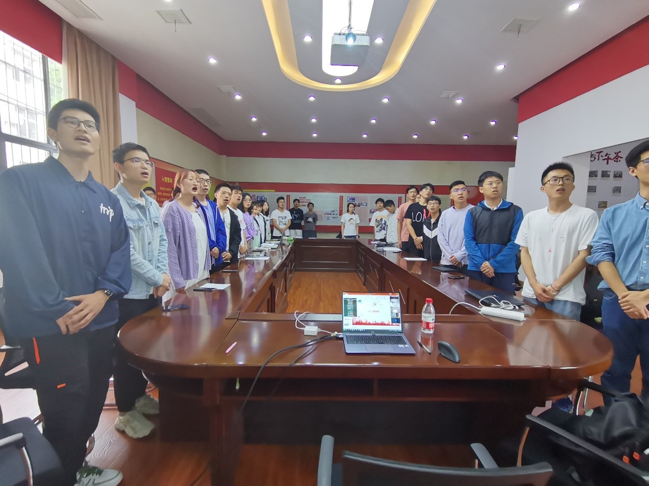 2021年度本科生“先锋党支部”称号表示祝贺。曹汉强指出这一荣誉来之不易,是每个党员共同努力的成果。他希望党员同志们再接再厉、再创辉煌。最后,曹汉强认为红歌承载着特定历史时期的时代精神,重温红歌对时代精神将会有更深的感悟,他提议退休党支部党员们和本科19级党支部党员们一起合唱红歌,重温红色岁月。