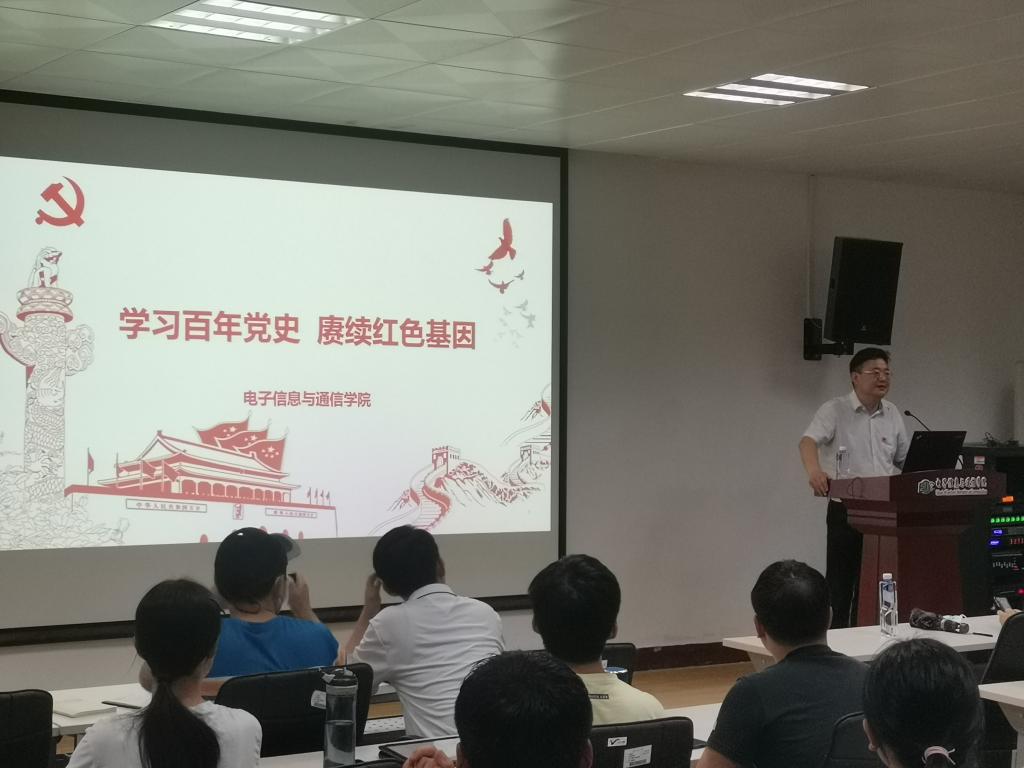 党委书记郑小建讲授“学习百年党史,赓续红色基因”专题党课。学校党史学习教育督导组组长林林、副组长郑超、联络员王腾飞到会指导。学院各教职工党支部委员、本科生、研究生党员代表参加学习。