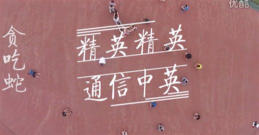 ”等字样,在无人机的俯拍下显得格外壮观;接着每个班级都别出心思的设计了自己的造型并用身体摆出,在无人机掠过时大声地喊出自己的口号,充满无限活力与激情,尤其是通信中英班的毕业生,利用无人俯拍的视角用自己的身体玩出了一局“贪吃蛇”的游戏,引人注目。