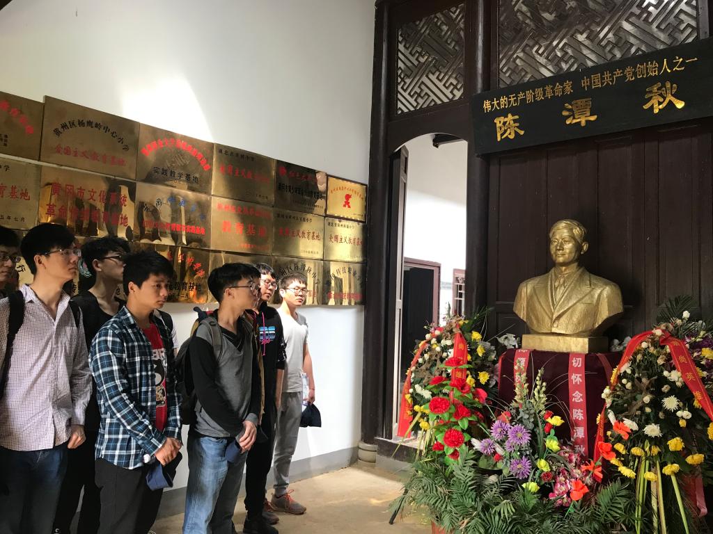 位于陈策楼镇的陈潭秋故居是这次行程的第一站。陈潭秋烈士是我党的创始人之一,一生为党的事业四处奔波。1943年9月27日,陈潭秋被敌人秘密杀害于狱中,时年47岁。为了更好的弘扬陈潭秋烈士的革命精神,1979年,当地政府仿照被毁的故居原貌修建了陈潭秋故居纪念馆。馆内陈列朴素,在解说员的讲述下,真实伟大的先烈风貌呈现在了大家心里。走进陈家宗祠,18位烈士的牌位赫然在目,这满门的英烈为革命事业做出的巨大牺牲撼动了每一个人,大家心中的敬意和缅怀之情无法用言语来表达。