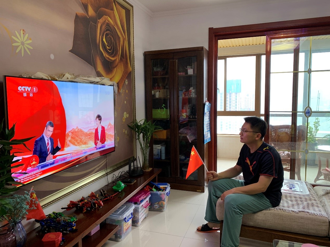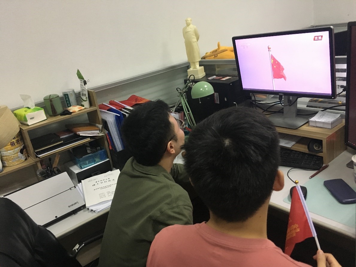 19级专硕第二党支部书记付跃辉说:“今天迎来了伟大的中华人民共和国70华诞,,这也是我们进入新时代的第一次大阅兵。看到伟大的祖国如今国富民强,有一支能够保家卫国的强大人民军队,心中激动久久不能平静。是这些人在替我们负重前行,让我们能在一个内部和平的环境安心学习,为我们国家和平发展筑起了坚实的护盾。我们要珍惜这一切,作为一名党员,要不忘初心、牢记使命,将自己的前途和祖国的发展结合在一起,发挥好一个共产党员的模范先锋作用。”