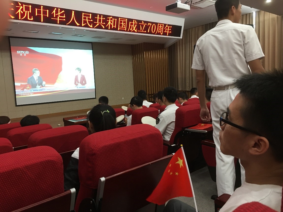 德育助理史师帅同学说:“今天上午,庆祝中华人民共和国成立70周年大会在北京隆重举行,我准时坐在电脑前观看直播盛况,看到解放军方阵迈着整齐划一的步伐雄赳赳气昂昂走来,看到空军飞机排着队从天安门上空飞过,看到这一幕幕,一股热血的自豪感在我心中熊熊燃起,我们这个饱受苦难的民族,一步步走来能取得今天的成就,实属不易。作为青年大学生党员,我们要铭记历史,艰苦奋斗,为祖国的更加繁荣富强贡献自己的光和热。”