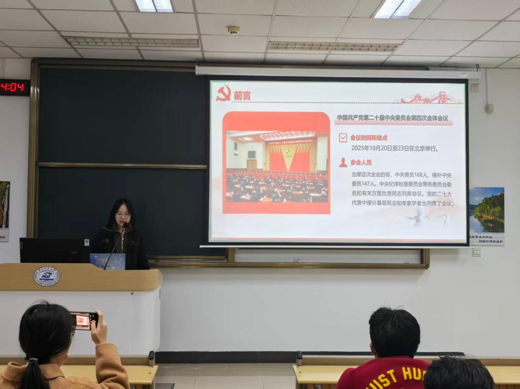 为深化全体党员对全会精神的系统认知,本次党日活动的微党课学习由支部王梦婷同志主持领学。她以 “阶梯式递进的现代化征程” 为核心脉络,系统解读党的二十届四中全会精神:从高度评价 “十四五” 时期我国发展的重大成就,到明确 “十五五” 承前启后的关键定位,深刻阐释 “实现社会主义现代化是不断发展进步的历史过程” 的核心内涵。