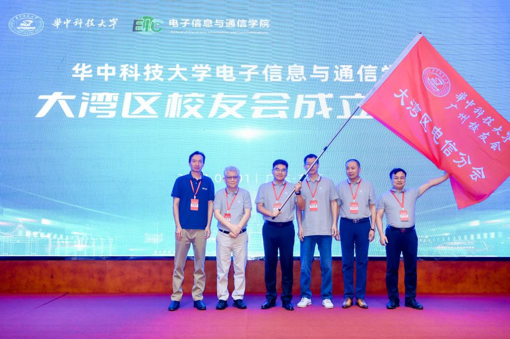 大湾区校友会的成立表示热烈祝贺,并表示广州校友会将为电信大湾区分会提供支持支撑。随后他为分会授旗。