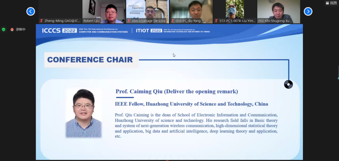 承办的2022年第七届计算机与通信系统国际会议(ICCCS)成功举办。本届会议受新冠疫情影响,采用线上会议形式,来自中国、美国、加拿大、日本、韩国、缅甸等国家的200余名专家学者及在校学生齐聚云端,就计算机和通信系统领域的各个方面展开了深入交流和讨论。