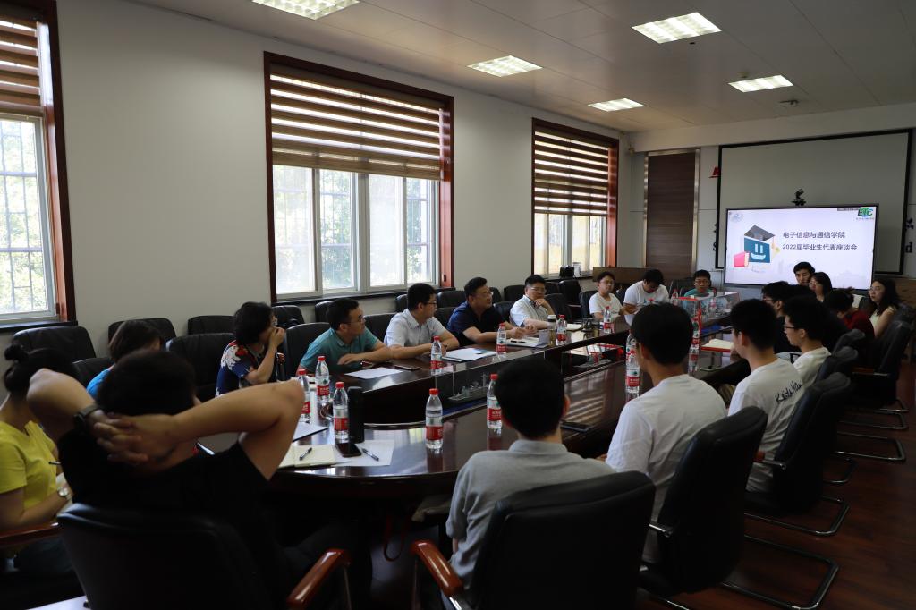 在南一楼中302举办2022届毕业生代表座谈会。学院党委书记郑小建、院长邱才明、副院长葛晓虎、党委副书记陈世英、本科教务科老师、学工组辅导员及13名毕业生代表参加本次座谈会,本科2018级辅导员刘程为会议主持人。