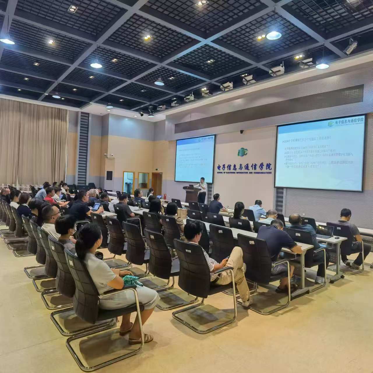 副院长葛晓虎报告科研工作情况,介绍学院接下来拟在组织基金申报方面的工作创新;副院长杨铀报告研究生教学相关工作,介绍研究生指标分配方案修订草案;副院长梁琨报告本科生教学相关工作,对迎接本科教育教学审核评估,规范本科教育教学管理提出明确要求;党委副书记陈世英报告学生工作特别是新学期迎新、开学工作情况。