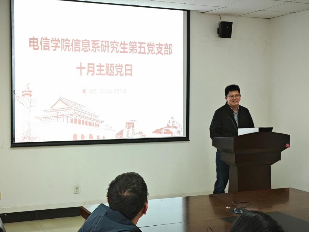 党委书记葛茜参加信息系研究生第五党支部主题党日活动并讲授党课,学院党委副书记陈世英、辅导员史师帅,支部全体党员及入党积极分子参加。