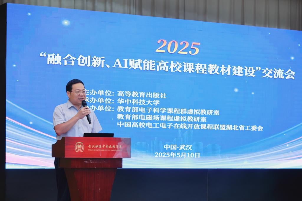 承办的“2025‘融合创新、AI赋能高校课程教材建设’交流会”在武汉融通中南花园酒店圆满落幕。教育部电子科学课程群虚拟教研室、电磁场课程虚拟教研室及中国高校电工电子在线开放课程联盟湖北省地区工作委员会协办本次会议。会议聚焦人工智能技术赋能教育数字化改革,吸引了全国高校电类专业院系领导、教学负责人及骨干教师等百余名专家学者齐聚一堂,共探AI时代课程教材建设新范式。