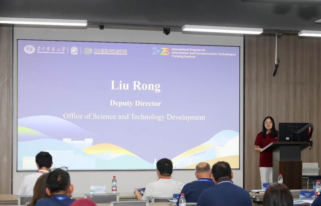 概况,强调国际化是华科大追求卓越的重要战略。她期望通过本次培训,分享中国在ICT领域的经验,促进发展中国家间的科研合作、技术交流与人才互动,为未来共同申报国际合作项目、承担政府间合作任务奠定坚实基础,并预祝培训班圆满成功。