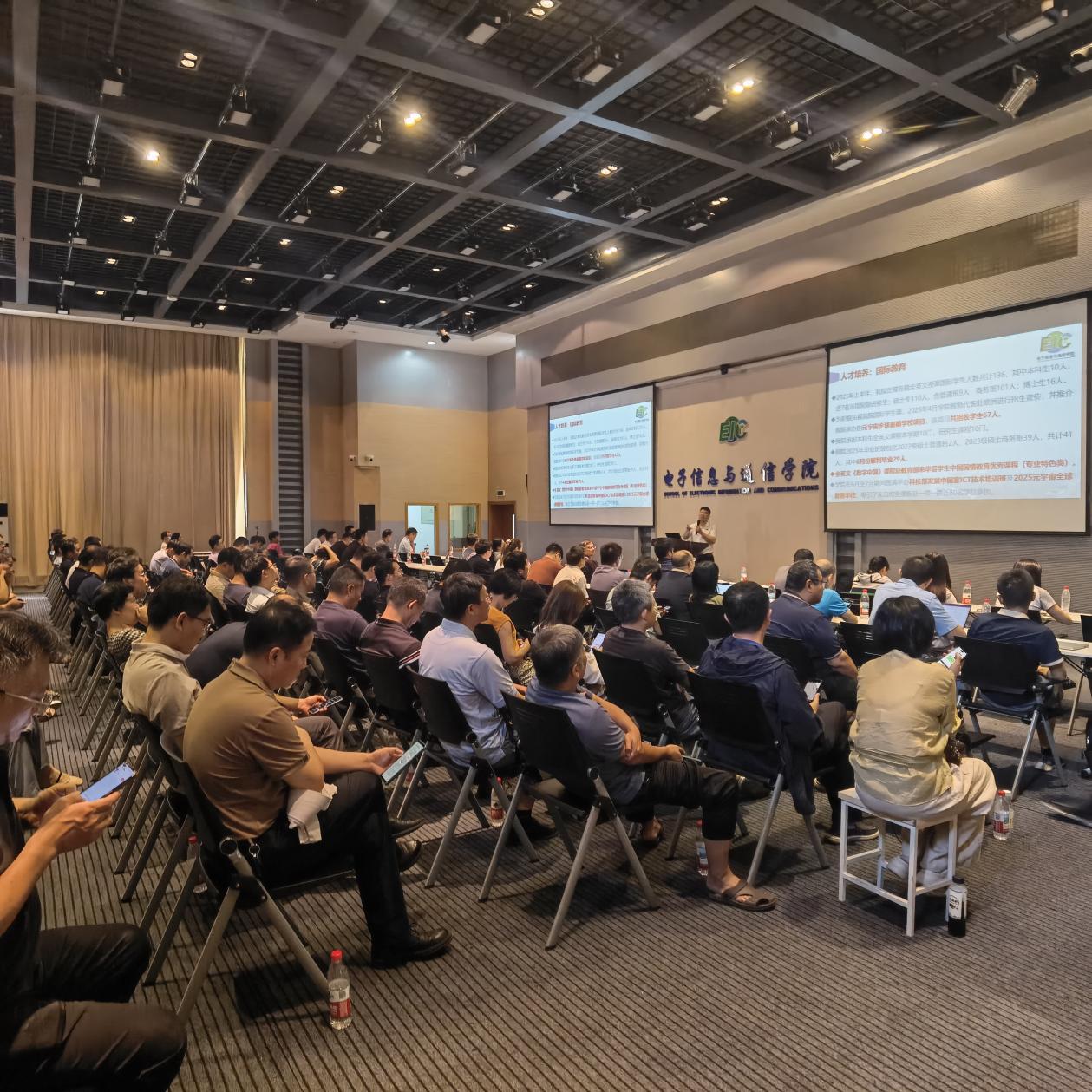 2025年暑期工作研讨会在学院报告厅及多个会议室举行。学院领导班子成员同全体教职工齐聚一堂,深入学习贯彻学校暑期工作会议精神,系统总结2024-2025学年工作,科学谋划“十五五”发展蓝图,部署安排新学年重点工作,以更高站位、更实举措贯彻学校第五次党代会战略部署,推动学院高质量发展,为教育强国建设贡献电信力量。党委书记葛茜主持会议。
