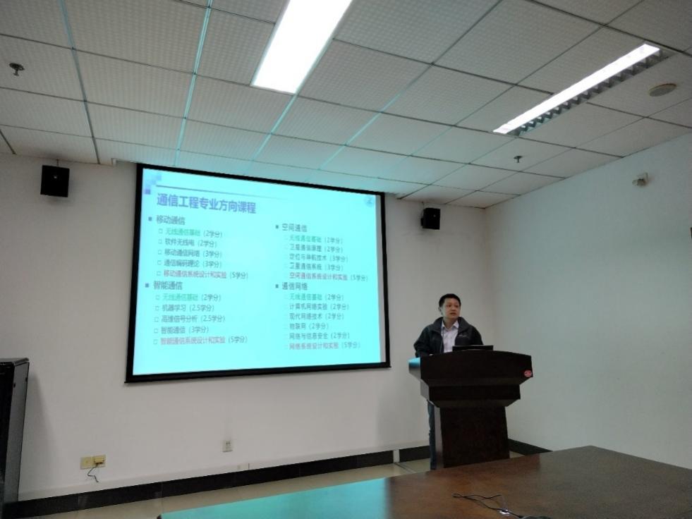 万凯就智能通信方向进行讲解。万凯讲述了大数据场景下的智能通信,软件定义无线电、认知无线电与智能无线电,通信技能与人工智能应用,并介绍了智能通信课程群和智能通信科研团队的相关情况。