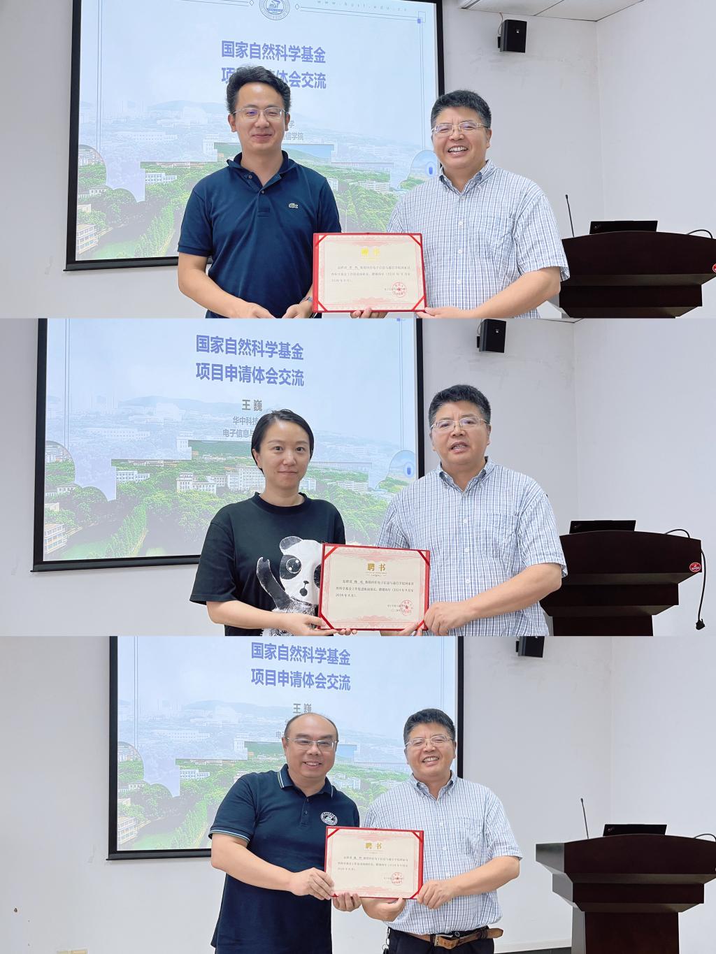 会议伊始,邱才明院长发表致辞,他强调了国基金的申报对于学院科研工作和学科建设的重要性;肯定了学院在2024年度国基金获批情况相比2023年有进步;指出还要进一步加强动员和交流等工作。随后,邱院长为万凯、杨欣和陈柯三位老师颁发了聘书,万凯被聘为学院基金工作促进组组长,杨欣老师和陈柯老师被聘为学院国基金工作促进组副组长。期待学院国基金工作促进组在未来的国基金申报工作中发挥重要作用。